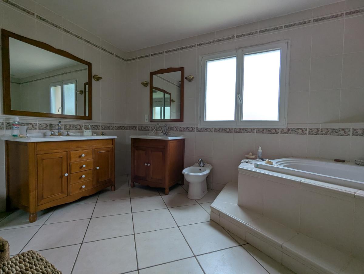 Pornic, maison familiale de 1999 et agrandissement de 2010 d'environ 181 m² comprenant une grande pièce de vie, 6 chambres, une salle de bains, une salle d'eau, possibilité d'une deuxième. Grand garage en rez de jardin, espace buanderie avec salle d'eau.
