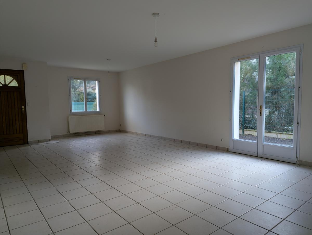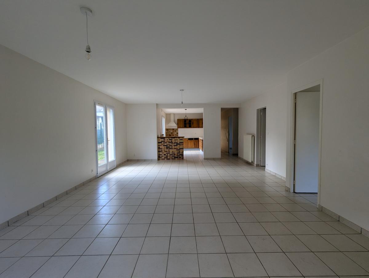Quartier du Menhir à SAINT BREVIN LES PINS, maison individuelle de 2000 comprenant une grande pièce de vie avec cuisine ouverte, 4 chambres, un wc, une salle de bains avec douche, une buanderie et un grand garage attenant.